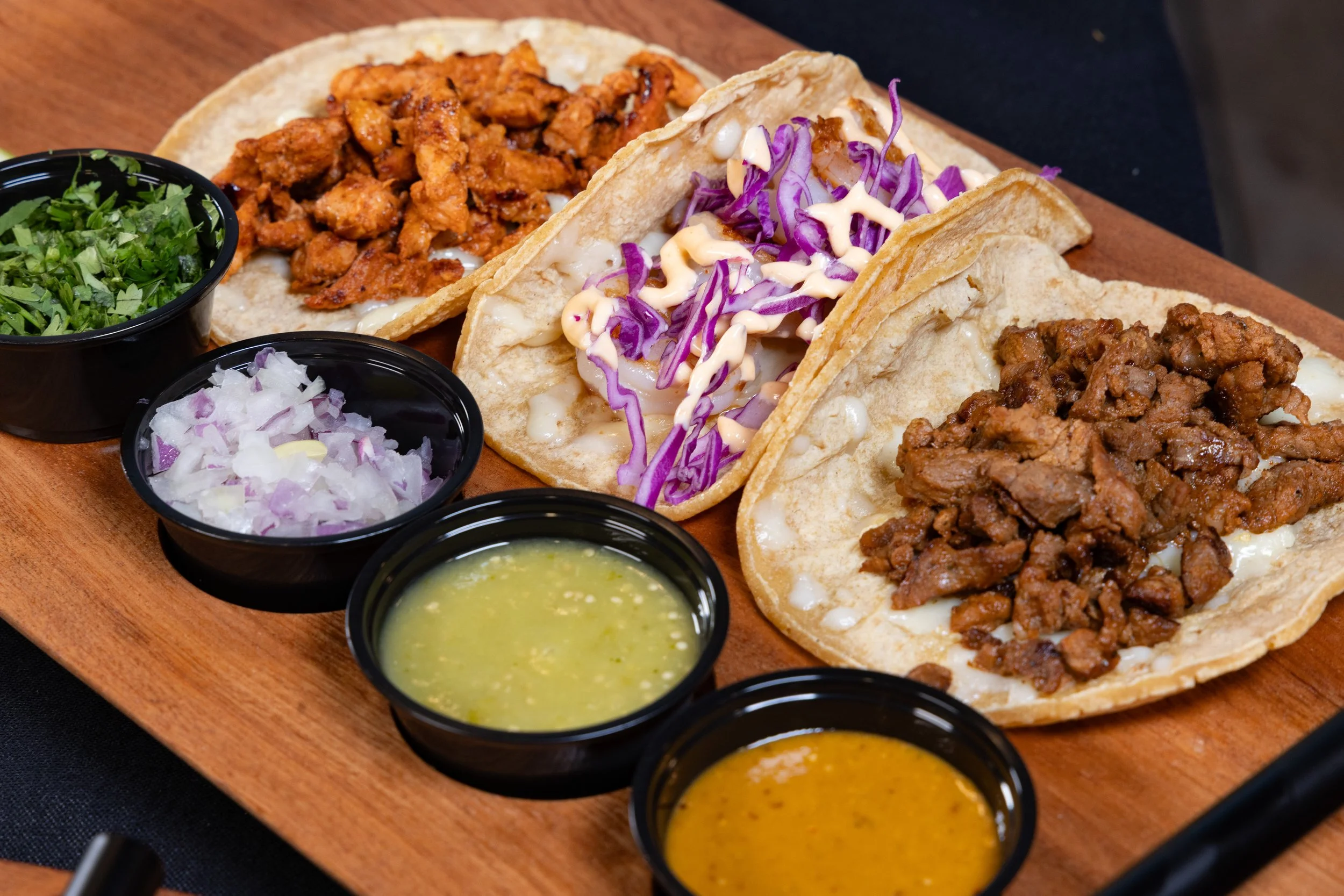 Combine any two or three tacos served with Mexican rice and Pinto beans. Three for 14.99 | Two for 11.99 | Single Taco only for 4.25
